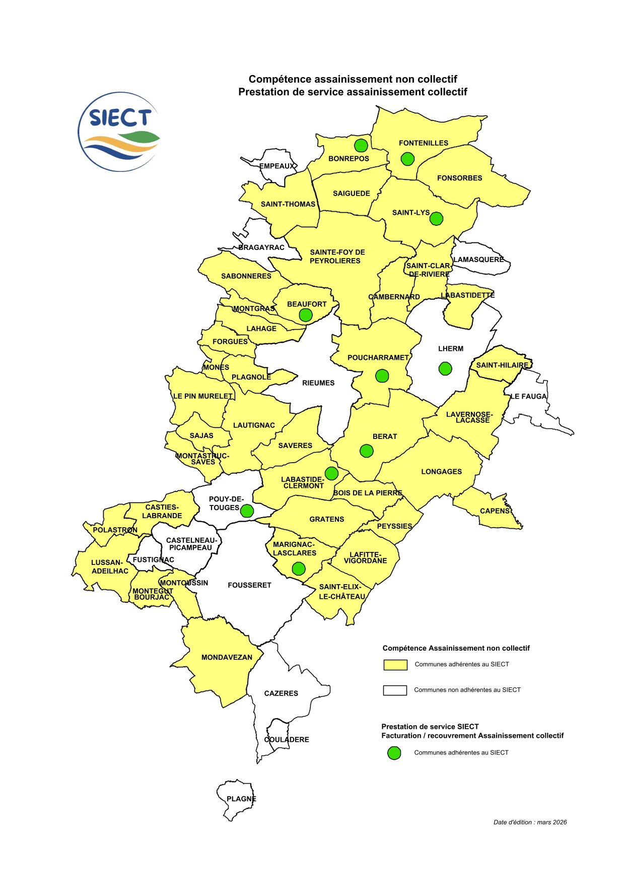 Le Service Assainissement du syndicat est un SPANC, Service Public d’Assainissement Non Collectif. Il assure le contrôle des installations d’assainissement autonome pour le compte de 41 communes du syndicat et facture l’assainissement collectif pour 10 communes.